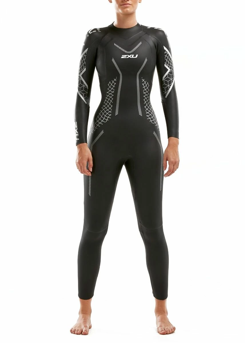 The 2XU Women’s P:2 Propel Wetsuit in black and textural geo is the most buoyant wetsuit from 2XU. Together with super-stretch arms and underarms, an extremely comfortable neck, rollbar and floating zip, this wetsuit has been designed to increase hydrodynamics and comfort in the water.
