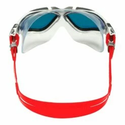 These Aquasphere Vists swimming goggles feature a layered titanium metal coating on the lenses. The red Titanium mirrored lenses provides sun and glare protection for maximum visibility in bright conditions.