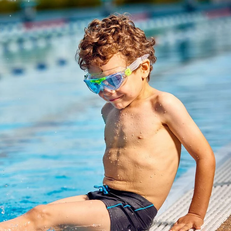 These new Aquasphere junior Vista goggles fits like a mask by sealing around the outside of the eyes, eliminating any pressure on the eye sockets. The soft Softeril gaskets create a more comfortable, leak free fit so your kids can wear them all day without worrying about getting water in their eyes.