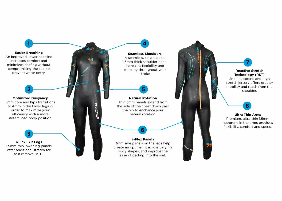 Blue Seventy’s New Women’s Reaction Wetsuit has been improved with a more flexible upper body and new, thinner lower leg panels for quicker suit removal. Add to that a low neckline and VO2 chest panels, and you’ve got a suit that delivers everything you need in training and racing.