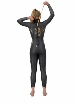 The Women’s MACH4.1 Wetsuit is a Triathlon wetsuit which is your new weapon to compete legally in open water swim races and triathlons. This wetsuit gives you the flexibility, buoyancy and comfort to swim long distances at your very best and is FINA Approved.
