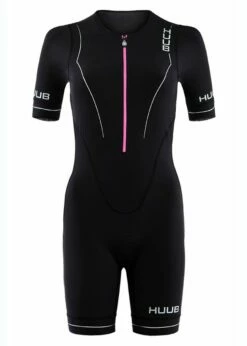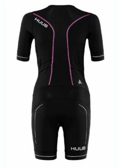 The HUUB Women’s Aura Long Course Tri Suit in black and purple has been designed to be one of the best performing Tri suits on the market. The suit features long course elbow sleeve for aero performance and added UV protection.