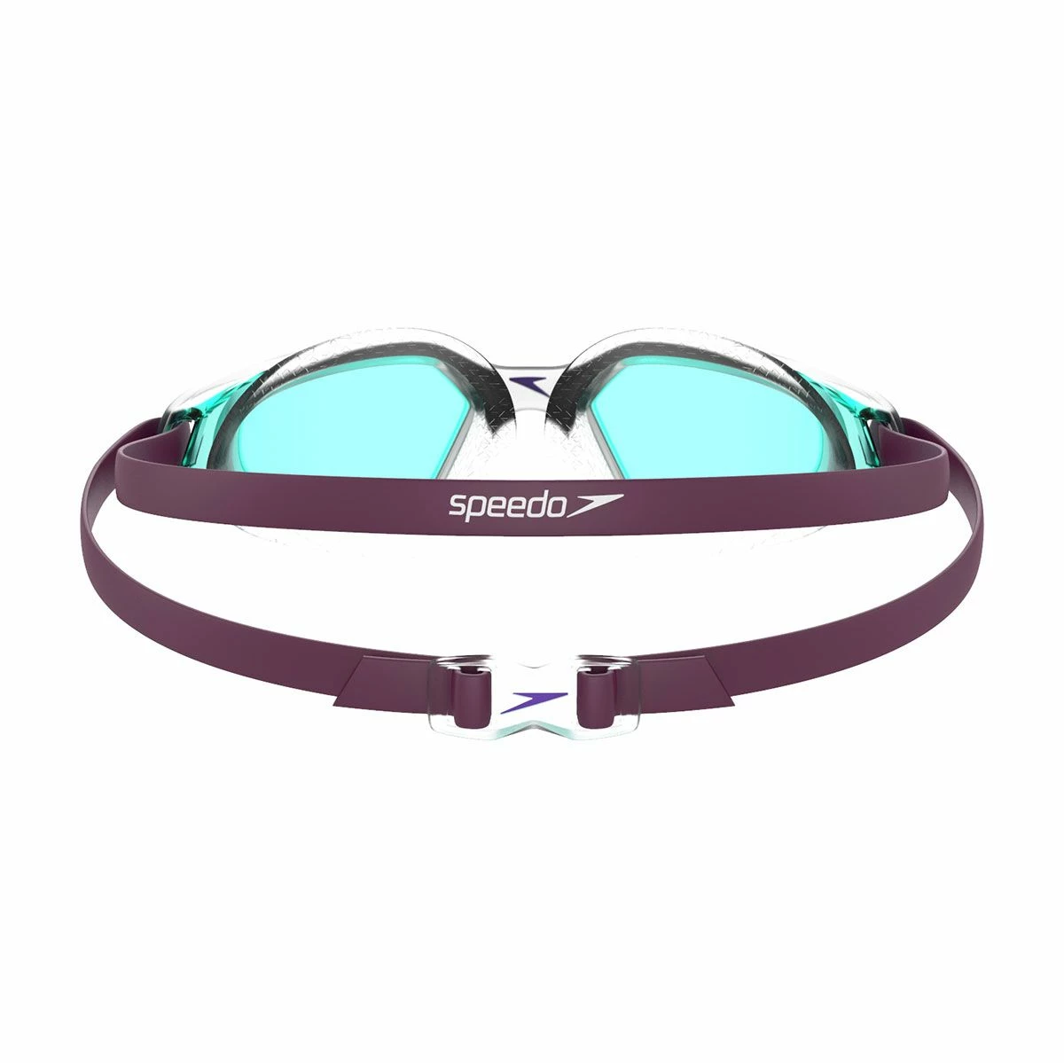 Perfect for young swimmers with a growing love of the pool, the Speedo Hydropulse Junior goggle In Purple and Blue offers excellent comfort. Super-soft seals provide a cushioned fit while the double silicone head strap allows a secure fit with easy adjustment. Wide vision lenses with anti-fog and 100% UV protection offer superior peripheral vision and underwater clarity for an immersive experience.