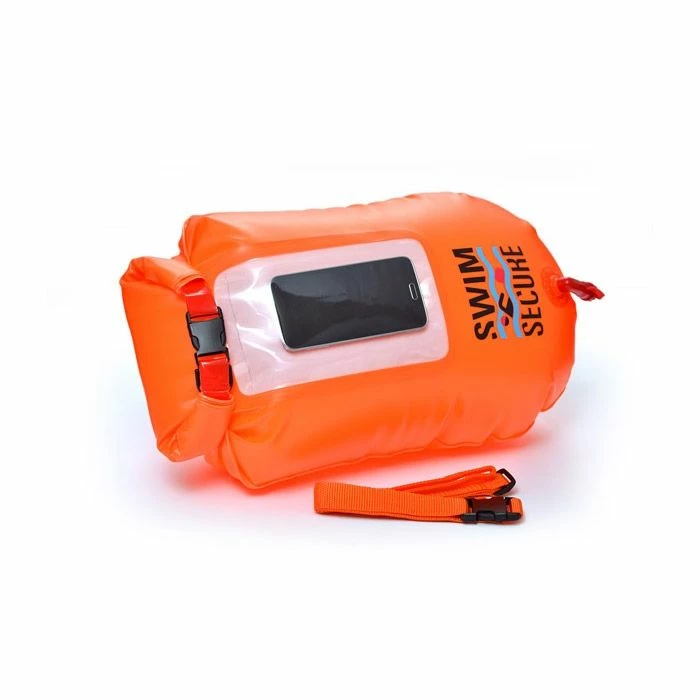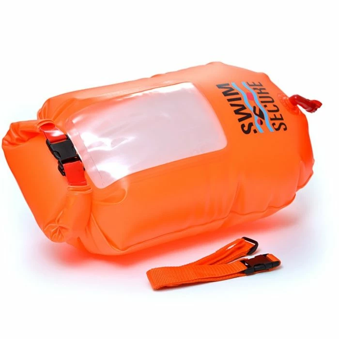 This windowed dry bag from swim secure is a brightly coloured inflatable dry bag with leash and waist strap with the added bonus of a window that allows your phone or GPS to be visible on the top of the bag. Ideal for storing kit whilst you swim, provides great visibility to other water users in open water, or friends and family on the shore looking out for you, and doubles as an inflatable buoy so if you get tired you can turn around and rest on the bag (and even make a call!).